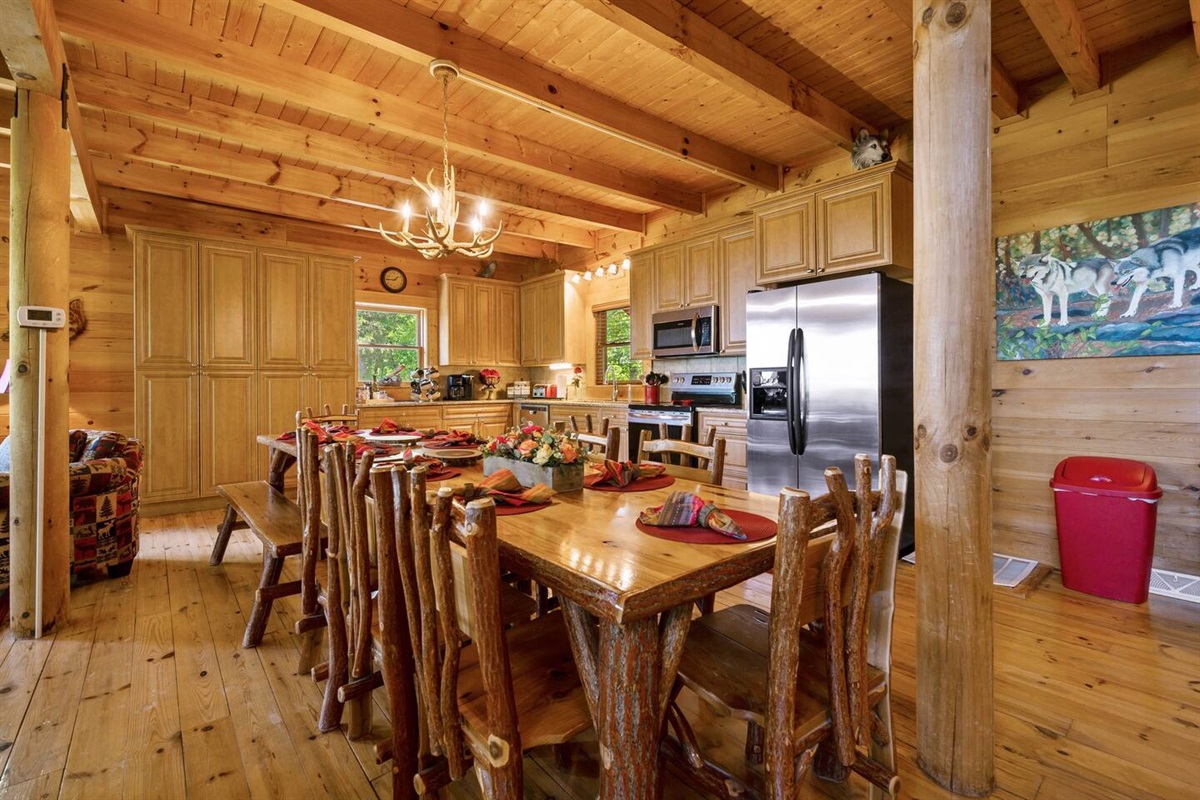 This 3 bedroom + a lofted bedroom, 4 bath cabin has ample space for your family reunion. UNIQUE FEATURE is that it has a SPACIOUS YARD and it is PRIVATE. This cabin has an open floor plan, fully equipped kitchen, plenty of flat level parking . Four spacious decks await so you can enjoy the beauty of the outdoors that surround this wonderfully private cabin. Our cabin is surrounded by beautiful trees so as you sit on any of the decks you will enjoy nature and the PRIVATE setting of this cabin. Although PRIVATE, you are just minutes from all of the fabulous attractions in Pigeon Forge. Tasteful smoky mountain decor can be found throughout this spacious cabin from each of the bedrooms to all of the living spaces. Warm up by the gorgeous stone gas fireplace located in the great room. It was just remodeled with new furnishings, new 7 person hot tub, fully equipped kitchen, dining table for 12-14, 6 flat screen TV's, xbox 360, KIDS playhouse and arcade machine with over 60 games. Recently added a handicap ramp from the parking pad to the back door and a beautiful swing set for the kids.